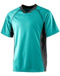 • Contrast color 1x1 rib-knit modified V-neck collar