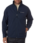 100% polyester Nexegen contour bonded soft shell; 100% polyester chamois touch tricot lining; Water-and-wind resistant; Abrasion-resistant chin guard; Adjustable cuffs; Adjustable drawcord at bottom hem; Zippered chest pocket; Zippered hand pockets; Embroidered Columbia logo on left chest;