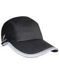100% polyester eventure knit shell with reflective trim ; Wrapped Eventure terry sweatband; Classic style, superior run-hat fit; Black undervisor to reduce glare; Flat front panel perfect for custom logo application; One size fits most - adjustable rear buckle with ponytail opening; Machine washable, air dry, does not shrink;