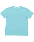 4.5 oz., 65% polyester, 35% combed ringspun cotton Harborside Mélange jersey; Topstitched ribbed collar; Contrast white cotton twill back neck tape; Double-needle sleeves and bottom hem; Two-button placket with contrast white twill at inside of placket; Stitched buttonholes; EasyTear™ label;